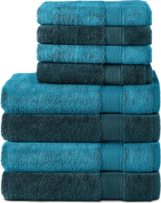 De Komfortec Handdoekenset biedt een luxueuze ervaring voor jouw badkamerrituelen. Deze set van 8 handdoeken, waarvan 4 badhanddoeken en 4 handdoeken, is gemaakt van hoogwaardig 100% katoen voor ultiem comfort en absorptie. De handdoeken hebben een dichtheid van 470 g/m², wat zorgt voor een zachte en duurzame textuur die lang meegaat. De kleuren Turquoise en Antraciet geven een stijlvolle touch aan je badkamerinterieur. Bovendien zijn deze handdoeken huidvriendelijk en zijn ze getest op schadelijke stoffen volgens de Oeko-Tex Standard 100. Met de Komfortec Handdoekenset geniet je elke dag van een heerlijk zachte en comfortabele ervaring na het douchen of baden. Verwen jezelf en je gasten met deze prachtige handdoekenset die niet alleen functioneel is, maar ook een vleugje luxe toevoegt aan je badkamer.