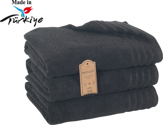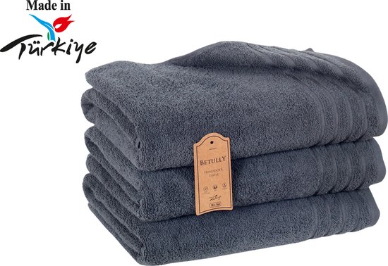De Betully ® Gibby XL Handdoeken Antraciet 70x140 Set van 3 Badhanddoeken zijn gemaakt van hoogwaardig 100% katoen, waardoor ze zacht aanvoelen op de huid en goed vocht absorberen. Deze handdoeken zijn perfect voor dagelijks gebruik in de badkamer en zorgen voor een luxe uitstraling in je interieur. Deze set van 3 badhanddoeken in antraciet is ideaal voor wie op zoek is naar kwalitatieve handdoeken met een stijlvolle uitstraling. Met een afmeting van 70x140 cm zijn deze handdoeken lekker groot en bieden ze voldoende ruimte om je helemaal in te wikkelen na een ontspannend bad of douche. Creëer een luxe hotelgevoel in je eigen badkamer met de Betully ® Gibby XL Handdoeken Antraciet 70x140 Set van 3 Badhanddoeken.