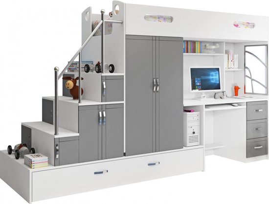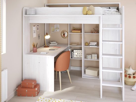 Met een strak en modern ontwerp past de hoogslaper perfect in elke kinderkamer. Het bed is voorzien van een handig bureau en een ruime kast, waardoor er voldoende opbergruimte is voor kleding, boeken en andere spullen. De lichte kleur zorgt voor een frisse uitstraling en maakt de kamer meteen een stuk ruimer. Het bureau is ideaal voor huiswerk maken of knutselen, terwijl de kast genoeg ruimte biedt om kleding netjes op te bergen. Door het stevige frame is de hoogslaper veilig en stabiel, zodat uw kind met een gerust hart in slaap kan vallen. De Multi Straight hoogslaper is niet alleen praktisch, maar ook een eyecatcher in elke kinderkamer. Met dit meubelstuk creëert u een complete en stijlvolle tienerkamer waar uw kind jarenlang plezier van zal hebben.