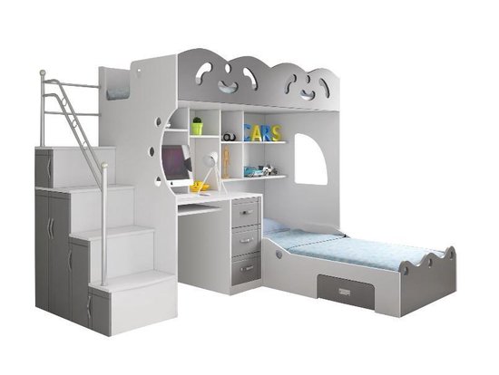 De hoogslaper MALICIA is niet alleen functioneel, maar ook stijlvol. Met zijn strakke lijnen en contrasterende kleuren voegt het een eigentijdse uitstraling toe aan elke slaapkamer. Het bed heeft een stevige constructie en is gemaakt van hoogwaardige materialen, waardoor het duurzaam en veilig is voor gebruik. Het ingebouwde bureau biedt voldoende ruimte voor het maken van huiswerk, studeren of werken vanuit huis. Daarnaast is er ook nog extra opbergruimte onder het bed voor boeken, kleding of andere spullen. De hoogslaper MALICIA is de perfecte oplossing voor kleine ruimtes waar efficiënt gebruik van de beschikbare ruimte belangrijk is. Met dit multifunctionele meubelstuk haal je het maximale uit je slaapkamer!