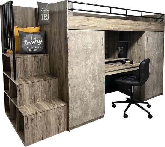 Deze hoogslaper is ideaal voor kleine slaapkamers waar ruimtegebrek een probleem is. Het stevige metalen frame zorgt voor stabiliteit en duurzaamheid, terwijl het moderne ontwerp een industriële uitstraling geeft aan elke kamer. De uitschuifbare bureau biedt voldoende ruimte om te studeren of te werken, terwijl de kasten en bergruimte in de traptreden perfect zijn voor het opbergen van kleding, boeken en andere spullen. Met de Study hoogslaper haalt u niet alleen een comfortabel bed in huis, maar ook een praktische oplossing voor het opbergen van al uw spullen. De hoogslaper is verkrijgbaar in verschillende kleuren en maten, zodat u de perfecte match kunt vinden voor uw slaapkamer. Creëer een stijlvolle en functionele ruimte met de Study hoogslaper met kast en bureau!