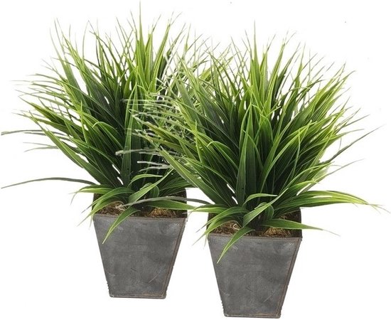 Deze prachtige kunstplanten brengen een vleugje natuur in huis, zonder dat je je zorgen hoeft te maken over het water geven. De groene grasplanten zijn levensecht en zitten stevig in een zinken pot van 30 cm groot. De hoogte van de pot is ongeveer 10 cm, terwijl de planten zelf ongeveer 30 cm hoog zijn. Perfect voor op een plank, tafel of bureau in elke kamer van het huis. Deze nepplanten zijn niet alleen een mooie toevoeging aan je interieur, maar ook gemakkelijk te onderhouden. Geen gedoe met water geven of zonlicht, gewoon genieten van de groene uitstraling van deze kunstplanten. Ze zijn ideaal voor mensen met een drukke levensstijl of mensen zonder groene vingers. Creëer een gezellige en natuurlijke sfeer in huis met deze kunstplanten als woondecoratie.