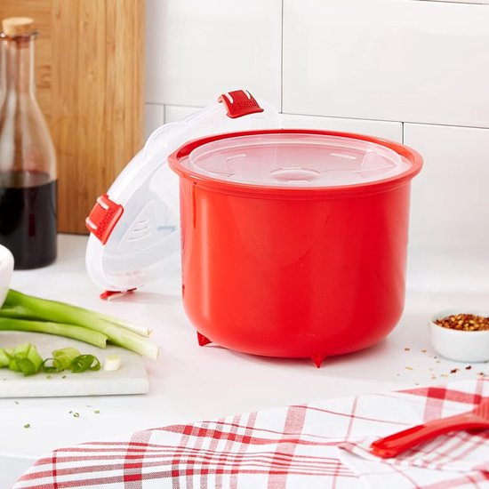 Ontworpen met het oog op gemak en efficiëntie, is de MicroCuisine QuickRice rijstkoker perfect voor drukke huishoudens en mensen die van lekker eten houden. Met een capaciteit van 2,6 liter kun je genoeg rijst koken voor het hele gezin, terwijl de BPA-vrije materialen zorgen voor een veilige en gezonde kookervaring. Dankzij het slimme ontwerp van deze magnetronrijstkoker kun je binnen enkele minuten perfect gekookte rijst op tafel zetten. Bespaar tijd en energie in de keuken en geniet van heerlijke maaltijden zonder gedoe. Of je nu rijst, quinoa of griesmeel kookt, met de MicroCuisine QuickRice rijstkoker wordt elke maaltijd een feestje. Ontdek nu de voordelen van deze handige keukenhulp en maak koken leuk en eenvoudig!