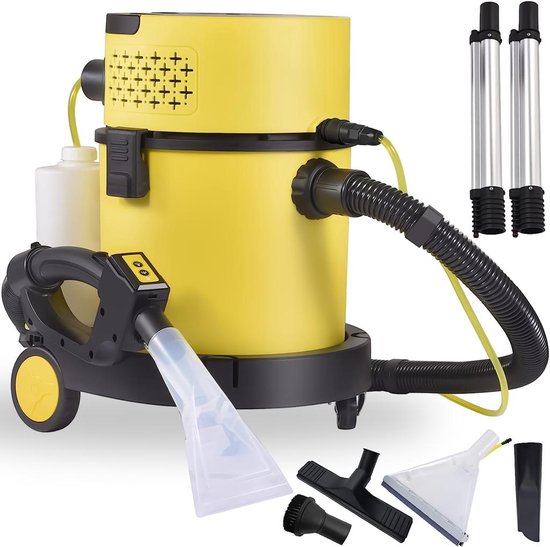 De draagbare waterreiniger is compact en lichtgewicht, waardoor hij gemakkelijk te verplaatsen is en geen moeite kost om op te bergen. De reinigingsmachine is voorzien van een 2 liter watertank en een speciale vlekkenreiniger om zelfs de meest hardnekkige vlekken te verwijderen. Daarnaast is de bankreiniger uitgerust met verschillende opzetstukken voor een grondige reiniging op alle oppervlakken. Met deze draagbare reiniger hoef je je geen zorgen meer te maken over vuile vlekken en geurtjes in huis. De krachtige prestaties zorgen voor een snelle en efficiënte reiniging, terwijl het geluidsniveau van 85 dB ervoor zorgt dat je geen overlast veroorzaakt. Met de tapijtreiniger kun je genieten van een fris en schoon huis, zonder gedoe en met professionele resultaten. Maak van schoonmaken een eenvoudige en stressvrije taak met deze handige en veelzijdige reinigingsmachine.