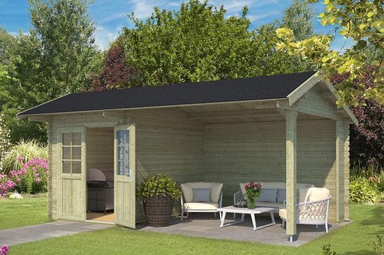 De blokhut is behandeld met een hoogwaardige beschermende laag die ervoor zorgt dat het hout lang mooi blijft en bestand is tegen alle weersomstandigheden. De luifel biedt extra beschutting en geeft de blokhut een charmante uitstraling. Ideaal voor gezellige zomeravonden met vrienden en familie, maar ook perfect om in de winter te gebruiken als knusse buitenruimte. De blokhut met overkapping is eenvoudig te monteren en wordt geleverd met duidelijke instructies. Het hout is afkomstig uit duurzaam beheerde bossen en is van hoge kwaliteit. Met deze prachtige toevoeging aan uw tuin creëert u een veelzijdige buitenruimte waar u het hele jaar door van kunt genieten. Maak van uw tuin een plek waar u heerlijk kunt ontspannen en genieten van het buitenleven.