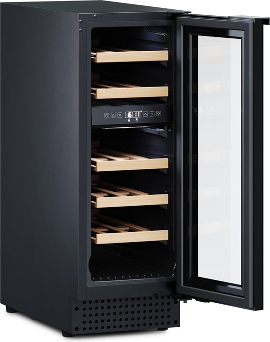 De Dometic Wijnkoelkast D18BB 2 Zones is de perfecte aanvulling op je keuken of wijnkelder. Met zijn strakke zwarte design en subtiele verlichting laat hij je wijnverzameling stralen. Deze wijnkoelkast kan niet alleen vrijstaand worden geplaatst, maar ook worden ingebouwd onder een standaard keukenblad, waardoor hij naadloos opgaat in je interieur. De handige omkeerbare deuropening zorgt voor extra flexibiliteit bij het plaatsen van de koelkast, terwijl de aanpasbare pootjes en plint ervoor zorgen dat hij perfect past bij de hoogte van je keukenkastjes. Met twee afzonderlijke temperatuurzones kun je zowel rode als witte wijn op de ideale temperatuur bewaren. De temperatuur kan worden ingesteld tussen 4°C en 22°C, zodat je altijd de perfecte serveertemperatuur hebt. Dankzij de krachtige compressorkoeltechnologie blijft je wijn altijd op de juiste temperatuur, ongeacht de omgevingstemperatuur. Met een capaciteit van 18 flessen Bordeaux is deze wijnkoelkast ideaal voor zowel de beginnende wijnliefhebber als de ervaren sommelier. Geniet van je favoriete wijnen op de perfecte temperatuur met de Dometic Wijnkoelkast D18BB 2 Zones.