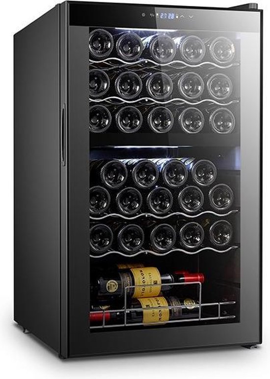 Met een capaciteit van 28 flessen en 5 houten lades biedt deze wijnklimaatkast de perfecte opslagoplossing voor wijnliefhebbers die hun collectie willen koesteren. De twee afzonderlijke klimaatzones stellen je in staat om zowel rode als witte wijnen op de ideale temperatuur te bewaren en te serveren. De strakke en moderne uitstraling van deze wijnkoelkast past perfect in elke keuken of wijnkelder. De UV-bestendige glazen deur beschermt je wijn tegen schadelijke invloeden van buitenaf, terwijl de stille compressor ervoor zorgt dat je wijnen ongestoord kunnen rijpen. Met de handige touch bediening en LED-verlichting is deze wijnklimaatkast niet alleen functioneel, maar ook een stijlvolle toevoeging aan je interieur.